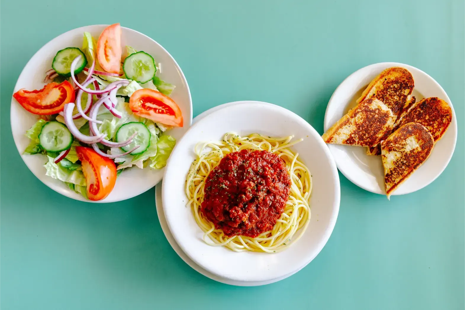 Soda: Coke, Diet Coke, Orange, Root Beer, Ginger Ale, Sprite, Pink Lemonade, Iced Tea, Raspberry Iced Tea, Fruit Punch