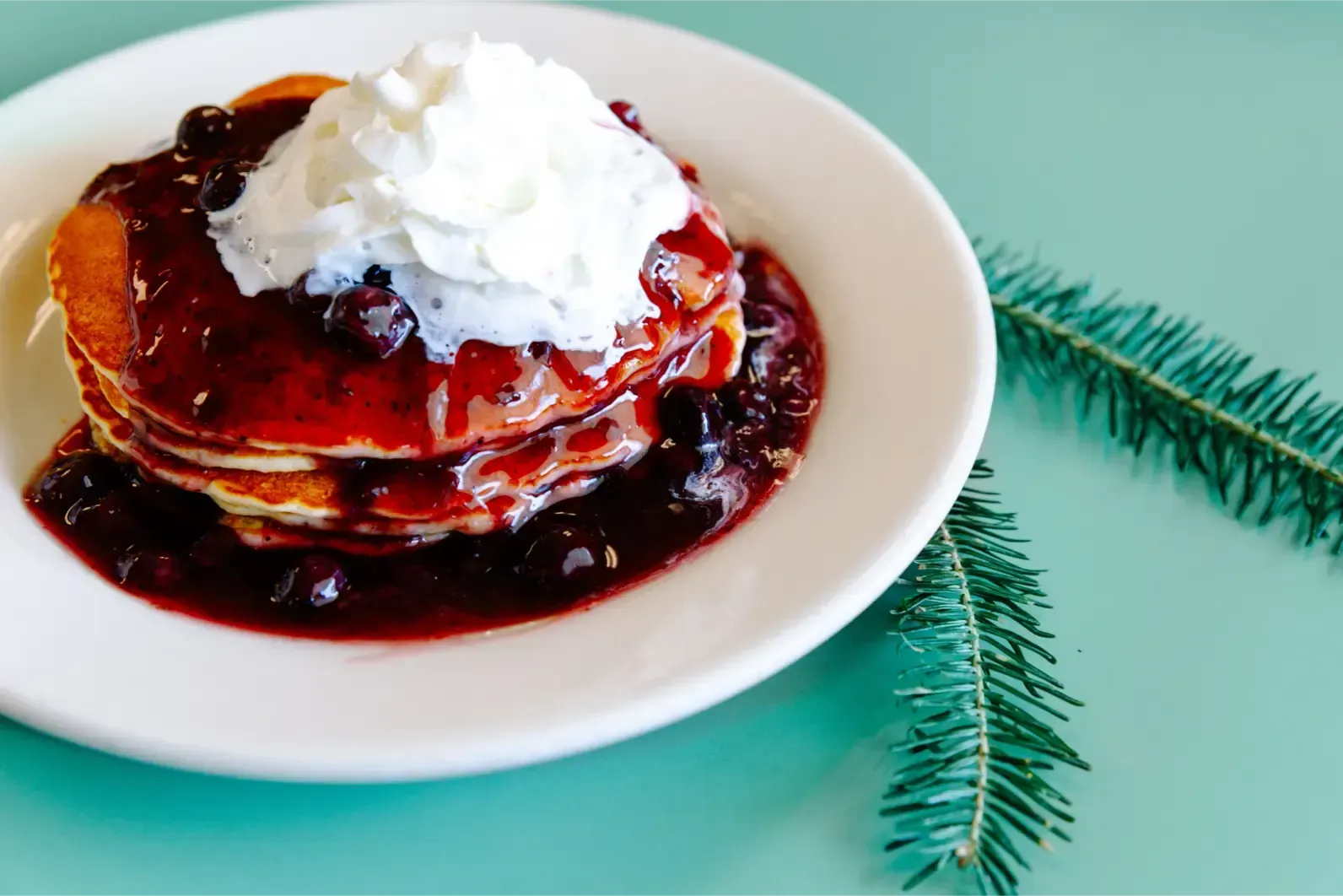 (1) buttermilk pancake, (1) egg, and (2) bacon or (2) sausage